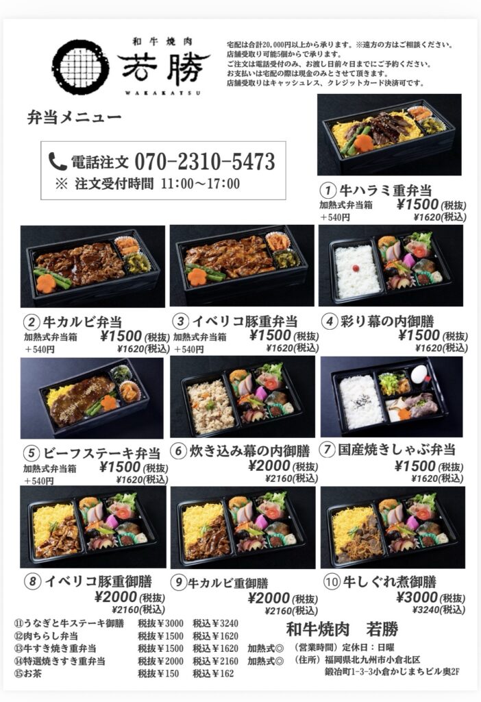 直接注文用の宅配弁当メニューです。